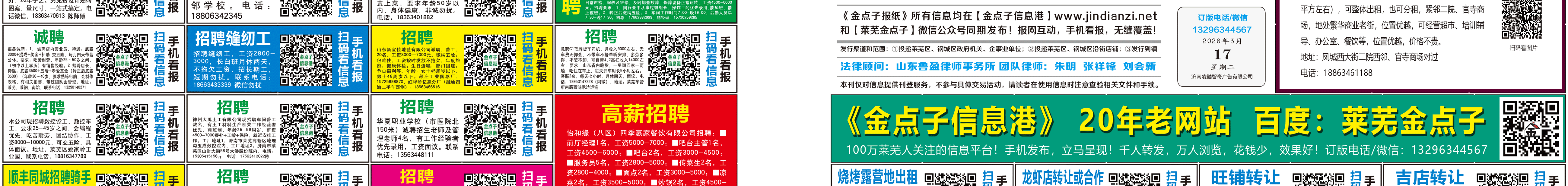 《萊蕪金點子廣告》報紙3月17日五、六版 http://www.viedano.cn 發(fā)布日期:2026/3/17 8:49:41 文章作者:萊蕪金點子信息港